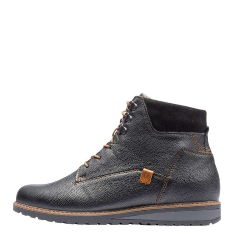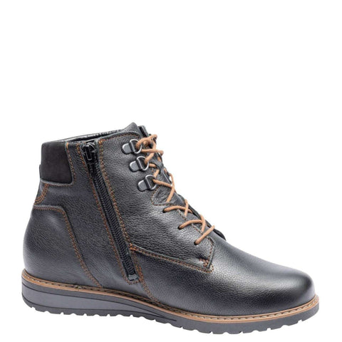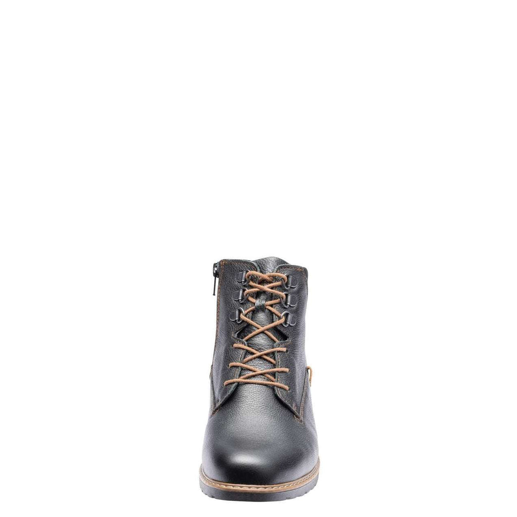 The discreet lace-up ankle boot in a comfortable H-width is the ideal companion for everyday life. The upper made of high-quality nappa and nubuck leather in black contrasts nicely with the color accents in brownish beige. The lacing in a robust mountaineer look helps with the individual adjustment of the width and supports the stability of the foot, the TR sole ensures good traction. The warm lining, the removable felt insole and the padding on the shaft are particularly comfortable. The side zip makes it easier to put on and take off and rounds off the look of the shoe perfectly.